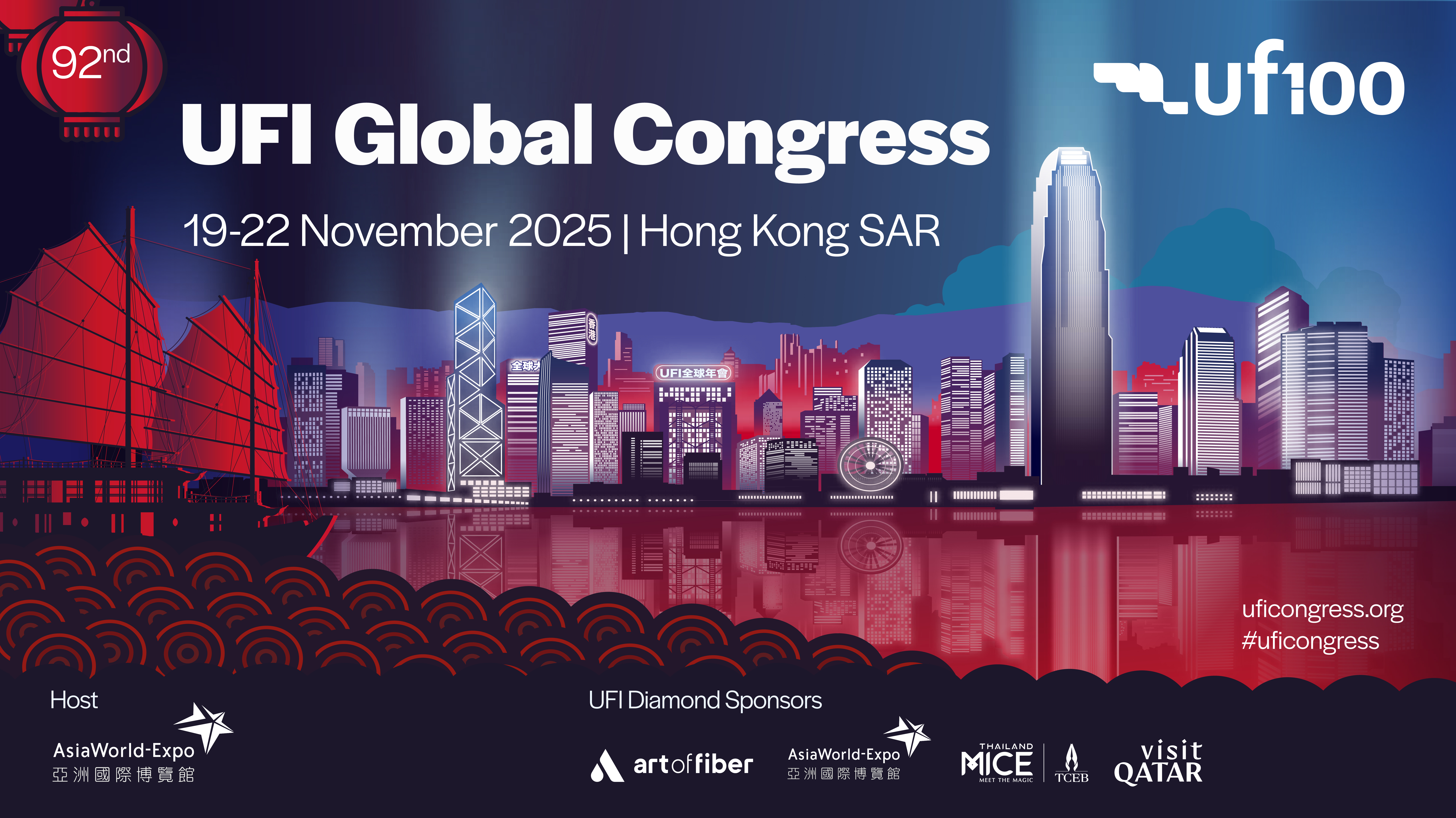 Event Details The UFI Global Congress is the “must attend” event for the exhibition industry, as the largest global meeting of the year, which gathers hundreds of industry leaders from around the world to network and learn. It presents a unique opportunity to gain valuable insights, network with peers, and uncover the latest industry trends and innovations. Be inspired by our expert keynote speakers and industry leaders as they share their wealth of experience and expertise. Engage in interactive breakout sessions to discover best practices, emerging innovative technologies, and fresh business strategies. AsiaWorld-Expo is proud to host this year’s UFI Global Congress from 19–22 November 2025. Strategically located at the heart of a multi-modal transportation hub and adjacent to the Hong Kong International Airport and Hong Kong-Zhuhai-Macao Bridge, AsiaWorld-Expo, with a convenient and in-venue MTR station, enjoys efficient transport connection to Guangdong-Hong Kong-Macao Greater Bay Area and other global regions. This year’s UFI Global Congress is more than just a conference - it’s a once-in-a-century event. “We’re not just reflecting on history - we’re building it. UFI’s 100-year legacy is a testament to the resilience and innovation of our industry”. - Chris Skeith OBE, UFI CEO and Managing Director READ MORE